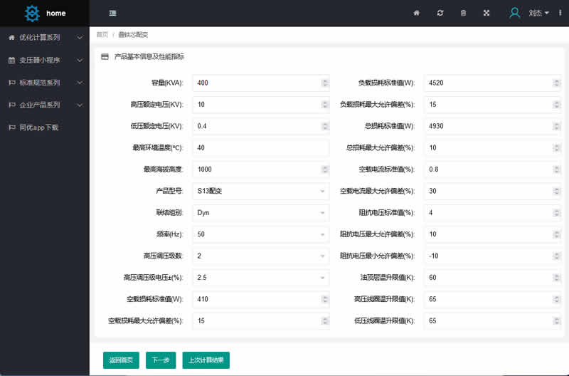 优化计算的B/S(web)版和C/S版的工作原理一样。以下以油浸式叠铁芯配变为例: